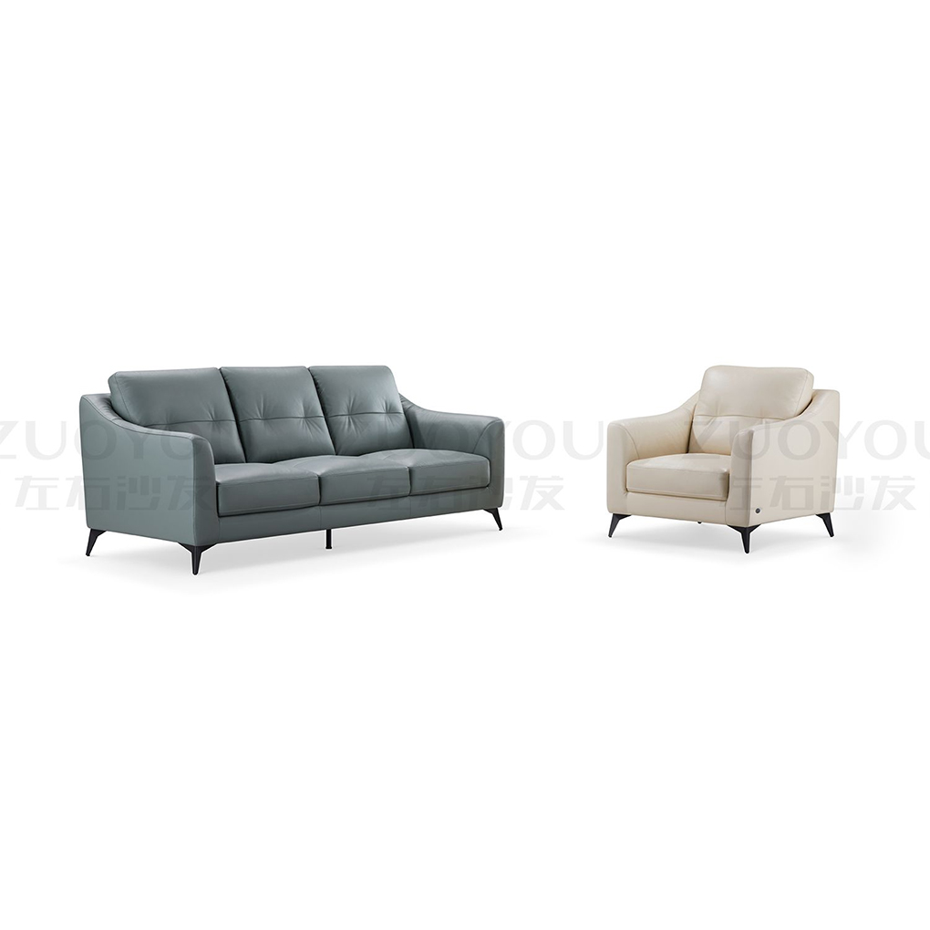 ② 三人位使用牛油果绿,清新优雅,再配上奶盖白单椅,雅致柔和,两个颜色都属 于莫兰迪色系,非常的百搭,撞色元素搭配令客厅生活空间轻盈灵动自然淡雅的